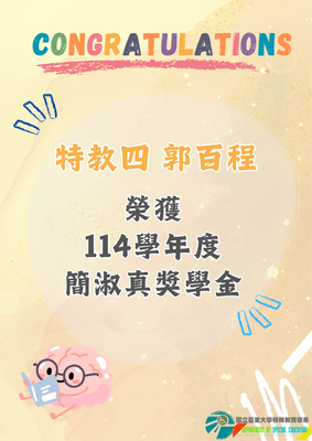 【恭賀】本系115級 特教四郭百程同學 榮獲114學年度師範學院簡淑真獎學金